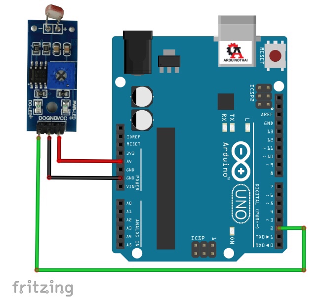 Light Sensor Module เป็นโมดูลตรวจจับแสง ให้ Output แบบ digital (0 1) สามารถปรับค่าความเข้ม(ความสว่าง)ของแสงได้โดยการหมุนตัวต้านทานปรับค่าได้(สีฟ้า) ใช้ไฟเลี้ยง 3.3-5V